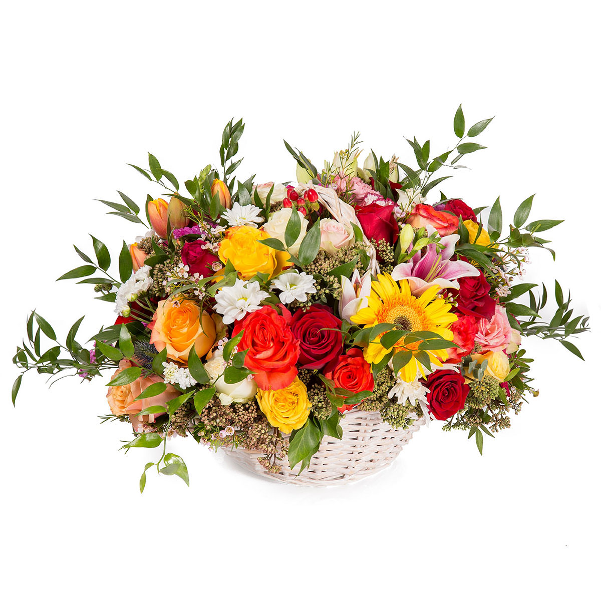 Цветочная композиция в корзине «Солнечный каприз» с гарантией качества, цены и быстрой доставки!